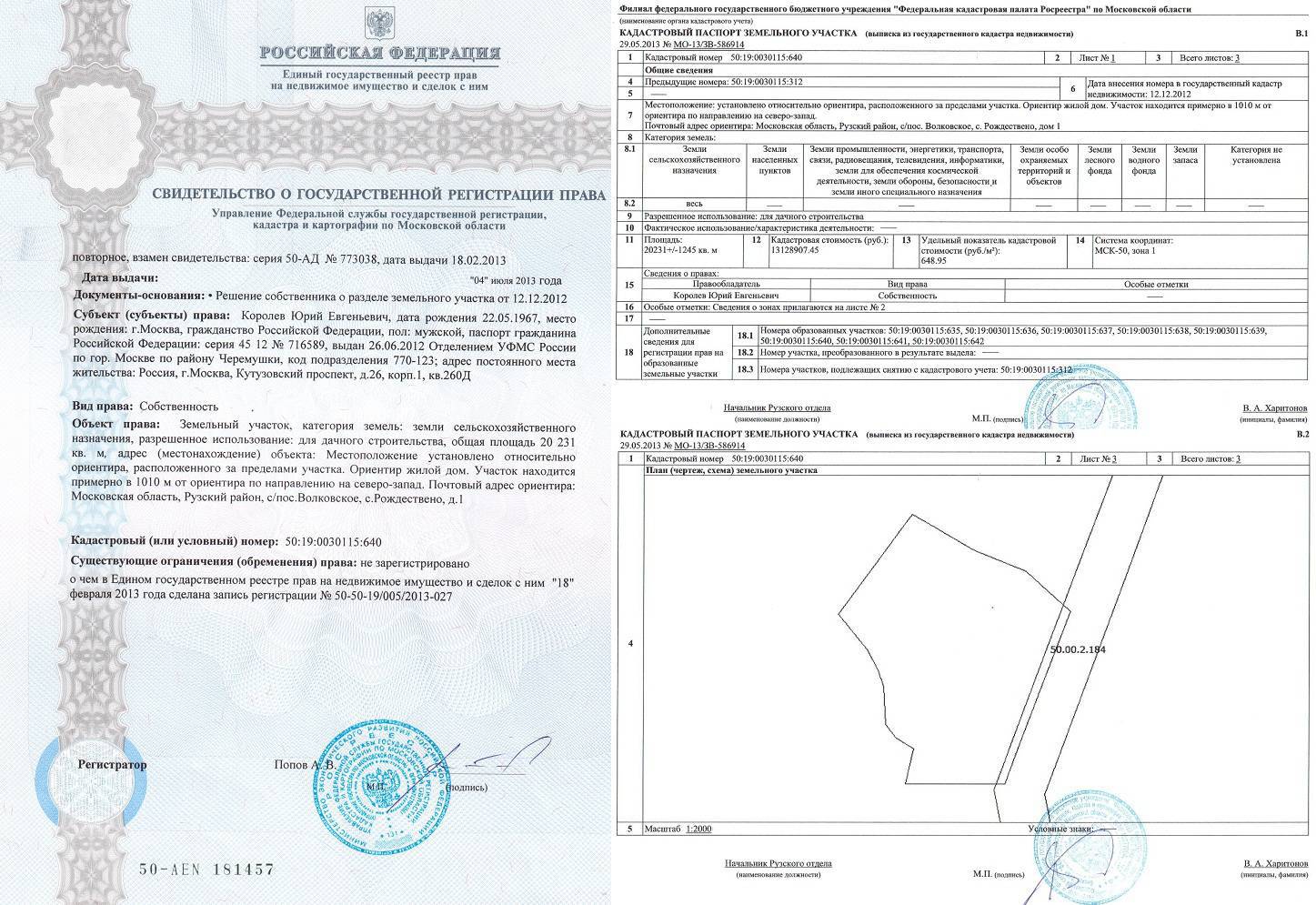 — техническая документация участка земли;